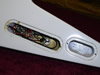 The triangle shaped control cavity is the most common control route shape found on serialized Charvel guitars. The early examples used thick black plastic covers attached to the body using 3 screws. The cover was recessed and once attached was flush with the body. The examples from 1980 to early 1981 used a copper colored shielding tape inside the cavity while examples from mid 1981 to early 1982 used a copper shield plate.