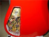 I have only seen a few examples of this smaller style bass route. The cover is attached using 3 screws and once attached the cover seats flush with the body.
